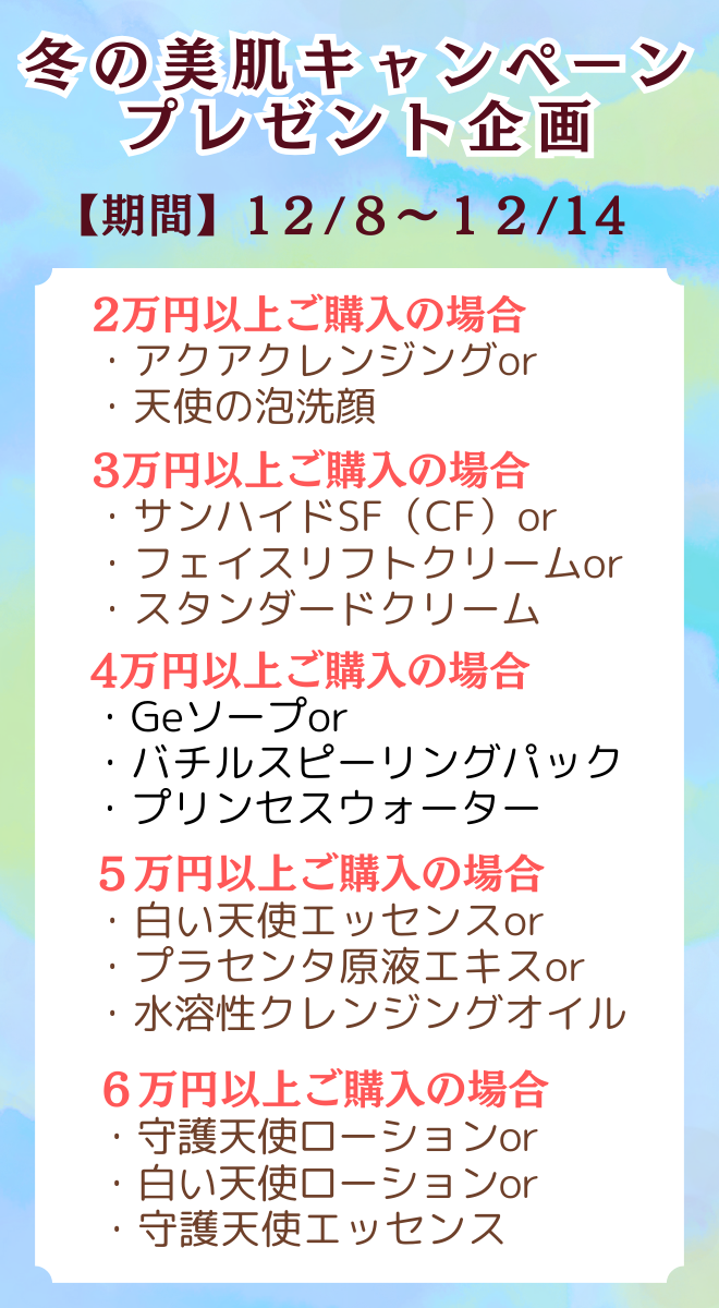 「アクアクレンジング」又は、「天使の泡洗顔」いづれか1本プレゼント!通信欄に希望をご記入ください。