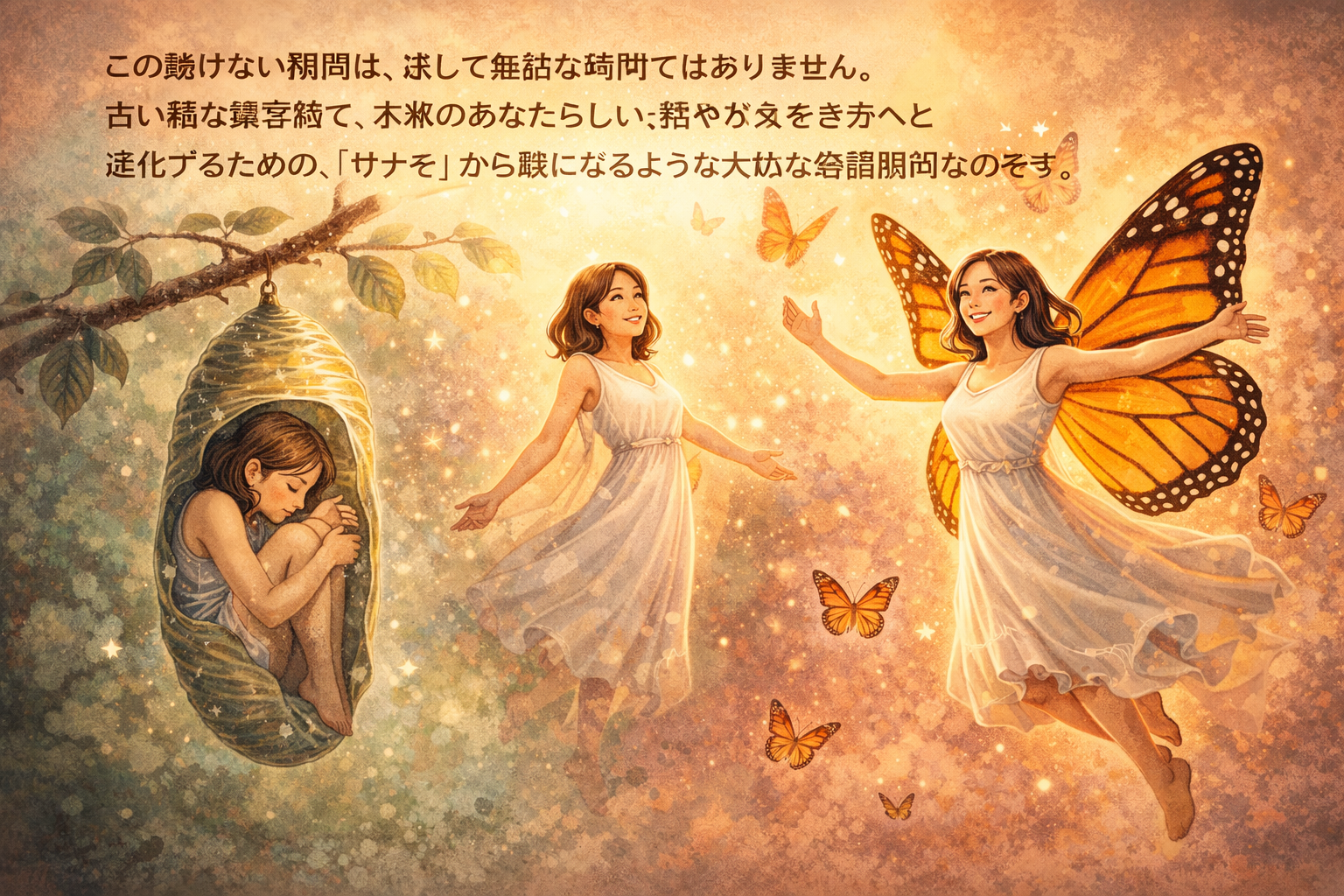 この動けない期間は、決して無駄な時間ではありません。 古い殻を脱ぎ捨て、本来のあなたらしい、軽やかな生き方へと進化するための、「サナギ」から蝶になるような大切な準備期間なのです。