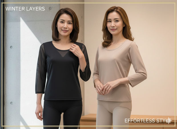 遠赤インナーは、 体から出る熱を逃さず、じんわりと包み込む設計。